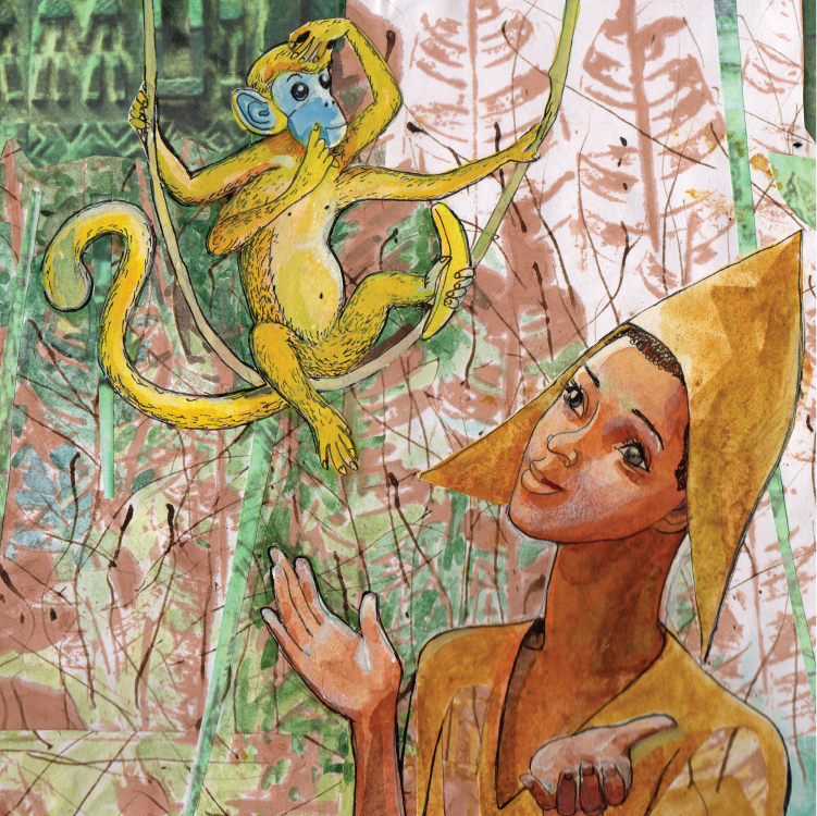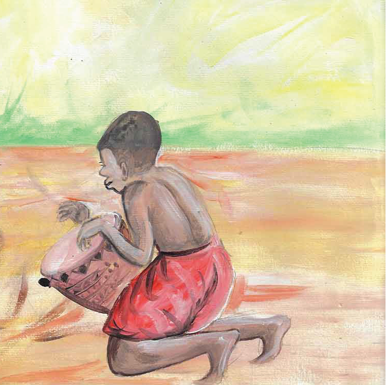 Le style Dogon se complète magnifiquement de la technique de collage dans laquelle excelle Irina. Ce format est une innovation dans le champs de l’illustration et permet de renforcer le surréalisme des tableaux et la beauté des scènes.